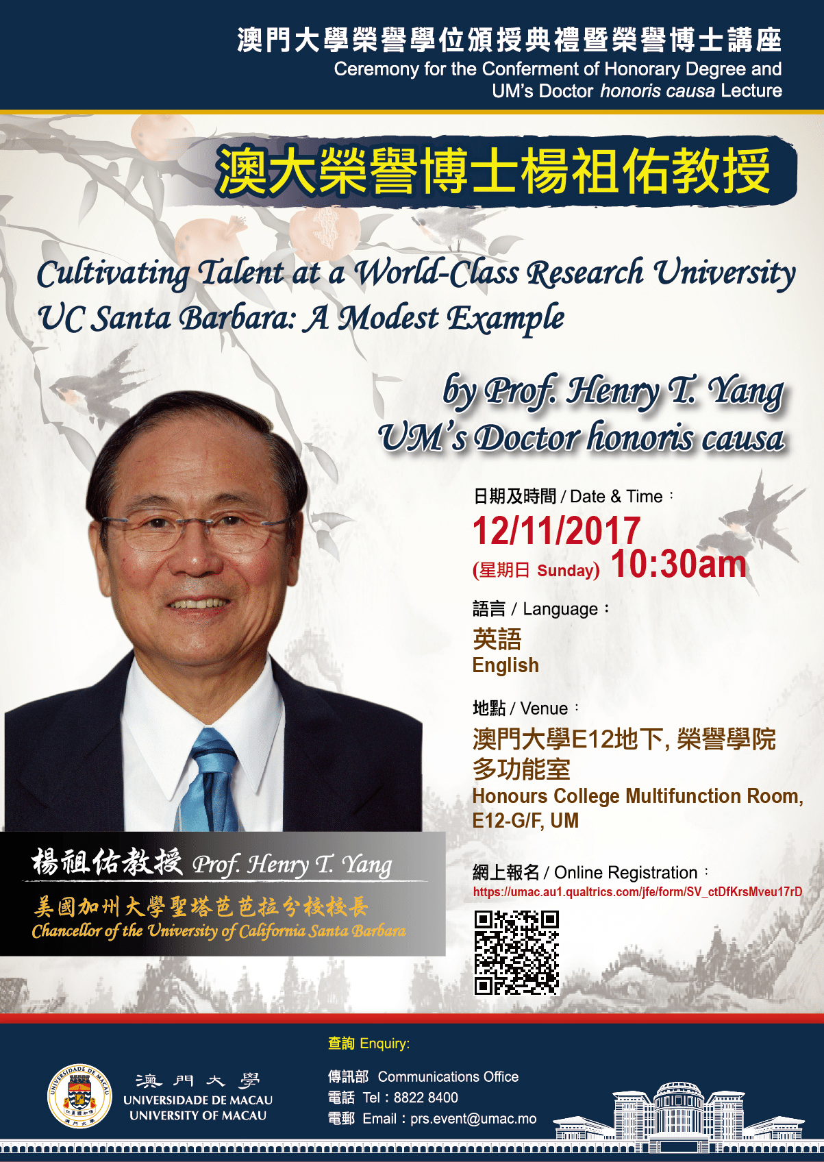 UM’s Doctor Honoris Causa Lecture and Honours Forum by Prof. Henry T. YANG (楊祖佑)